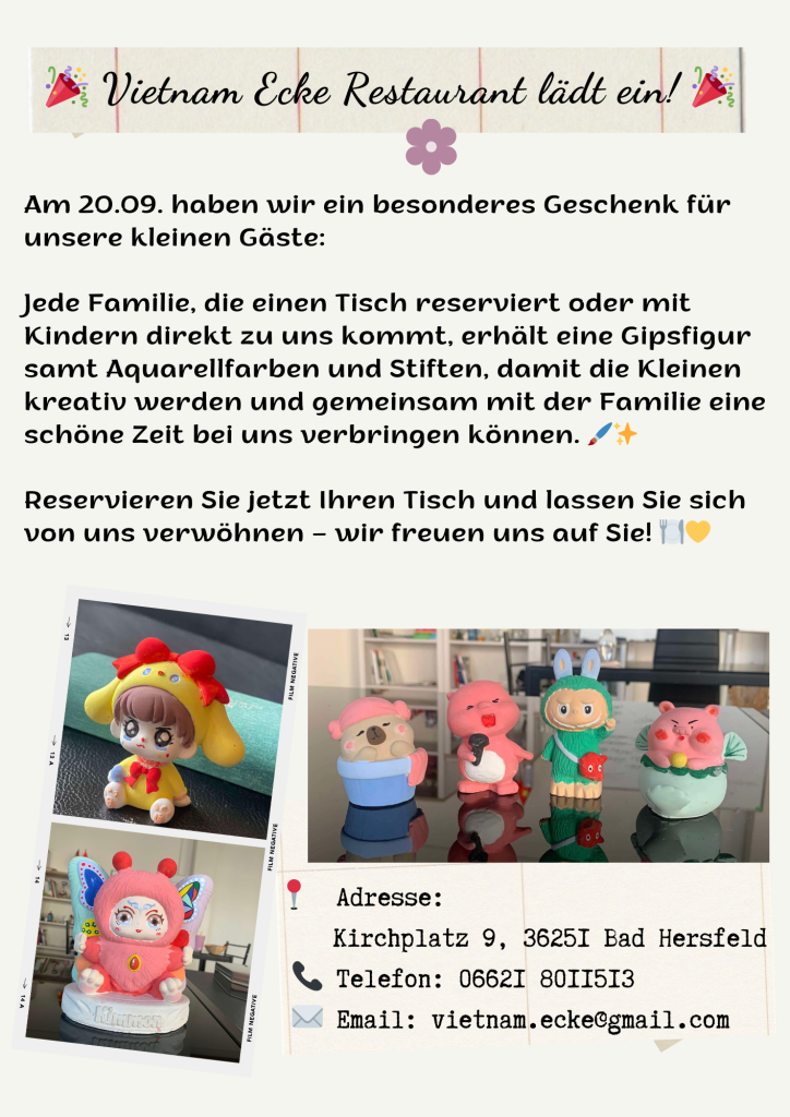 👨‍👩‍👧‍👦 Jede Familie, die einen Tisch reserviert oder mit Kindern bei uns isst, erhält ein tolles Geschenk: